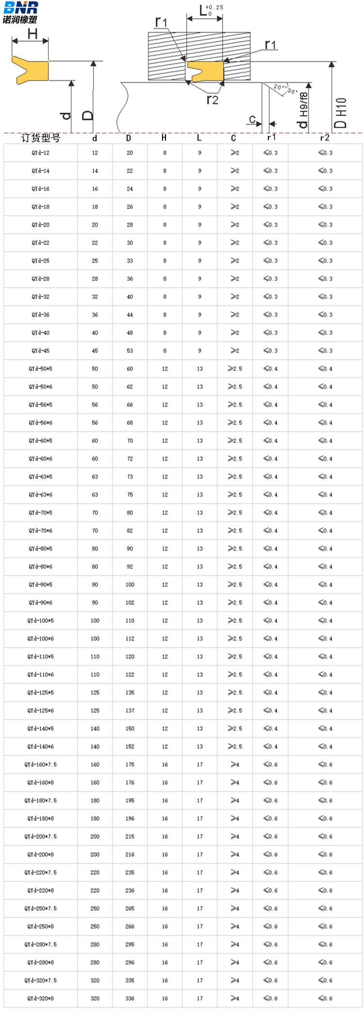 安装:这类密封件就有轴向间隙(参见表中h和H栏),可采用整体式活塞。为避免密封唇损坏,安装时应当采取措施避开锐边。