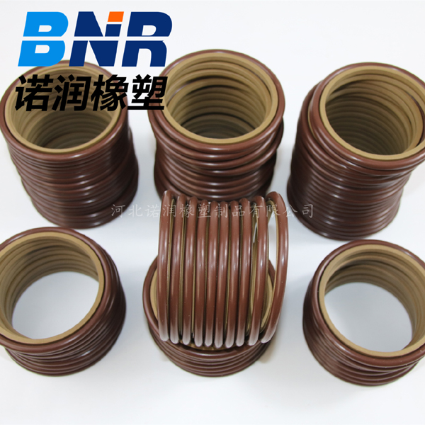 一、性能与用途 由一个低磨擦的填充聚四氟乙烯(PTFE)环和O形橡胶密封圈组合而成,O形圈提供足够的密封预紧力,并对PTFE环的磨耗起补偿作用。PTFE摩擦系数小,动静摩擦系数相近。适用于高低速往复运动及高压系统的油缸活塞杆密封,起双向密封作用。一般要和导向环配套使用。轴径小于Φ30的规格,应采用分体式沟槽。 二、材 质 方形圈为填充聚四氟乙烯PTFE,O形圈为丁腈橡胶NBR或氟胶FKM 三、工况条件 耐 压:0-40MPa; 往复速度:≤5m/s; 工作温度:丁晴NBR:-30~+120℃,氟胶FKM:-20~+200℃; 工作介质:液压油、气、水(在磷酸酯液压油中选用氟胶)。 四、设计标准 本系列可参考B+L公司S55043系列。 五、标注方法 轴用方形圈用订货号来标注,示例:GSI-0180 PTFE+NBR 六、结构装置