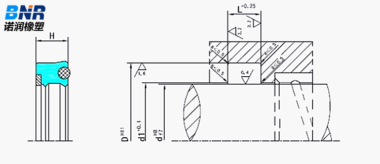 BD型活塞杆密封是唇形密封进一步发展的成果,它具有两道密封唇,并有一个抗挤压的挡圈。由于两道密封唇的作用,在密封间隙中便保持着额外的润滑。(这就大大地防止了干摩擦和磨损,从而延长了密封件的使用寿命)。