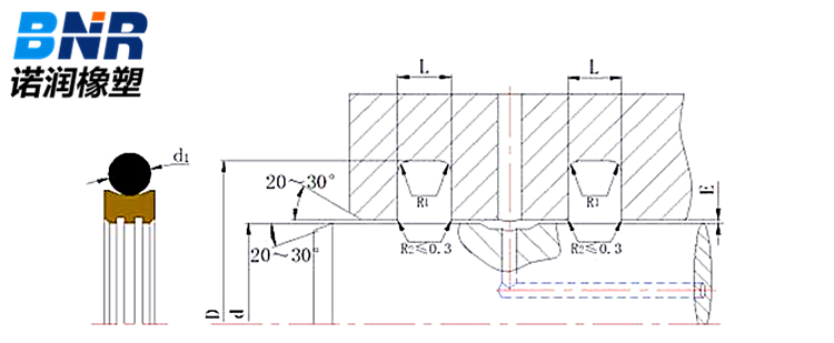 一、性能与用途 由一个耐磨、低摩擦的填充聚四氟乙烯(PTFE)滑动环和O形橡胶密封圈组合成。O形圈提供预紧力,可对滑动环的磨损起补偿作用。它具有双向密封效果,适用于液压设备中的高压、低速回转轴密封。轴径小于Φ30的规格,应采用分体式沟槽。 二、材 质 PTFE+NBR,特殊情况下橡胶弹性体选用氟胶FKM。 三、工况条件 耐 压:0-40MPa; 旋转速度:≤15m/s; 使用温度: 丁晴胶NBR:-30~+120℃; 氟胶FKM:-20~+200℃; 工作介质:液压油、乳化液、水。 四、设计标准 设计时可参考B+L公司GS56130-GS56135系列。 五、标注及订货方法 轴用回转方形圈用订货号来标住,示例:GRS-0800 PTFE+NBR 六、结构装置