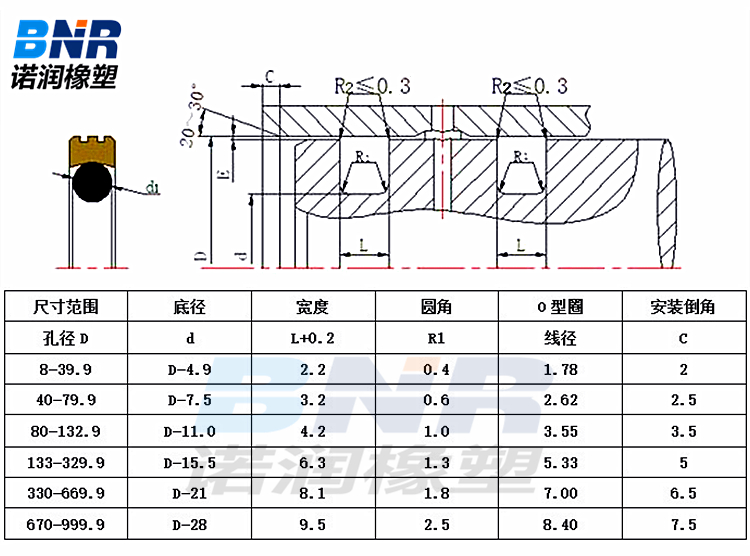孔用回转方形圈用订货号来标注,示例:GNS-0200